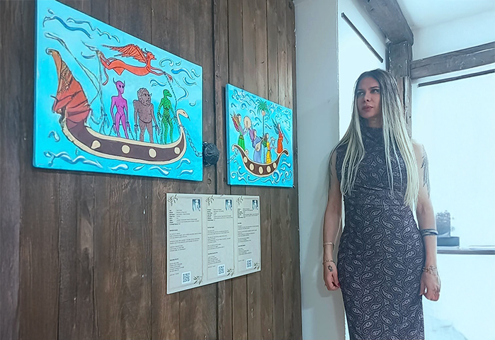 Sergiye katılan sanatçılar arasında yer alan Eylül Duru, “Meleklerin Gemisi” adlı eseriyle Gazze’de süregelen soykırıma karşı güçlü bir barış mesajı verdi.